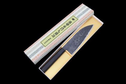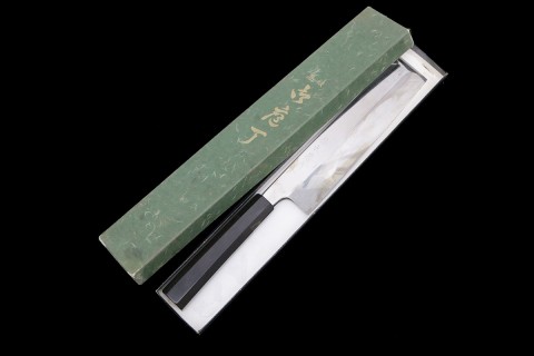 銘不明 鰻裂包丁 江戸裂き 本焼 七寸半 黒檀柄 鞘付