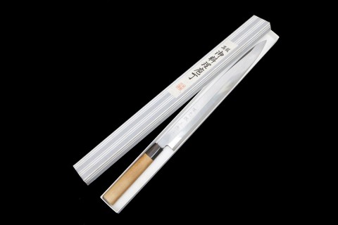 有次 薄刃包丁 霞 六寸半 特製 上 朴柄 名入