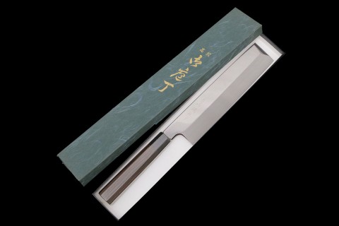 河豚引包丁 本焼 九寸 黒檀柄 鞘付