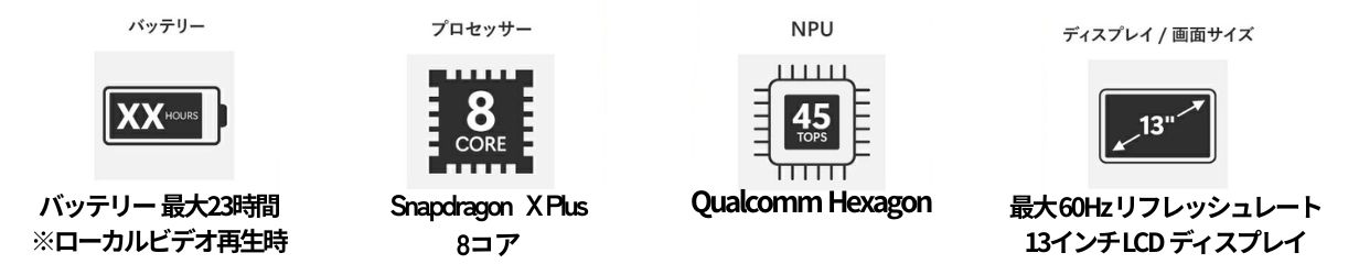 ■ プロセッサー Snapdragon X Plus 8コア搭載
