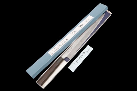 無銘 柳刃包丁 霞 尺二 銀巻黒檀柄 箱付