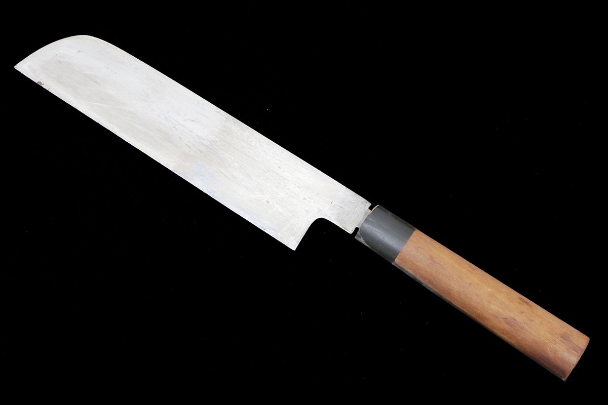 無銘 鎌形薄刃包丁 霞 七寸 朴柄