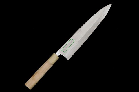 無銘 出刃包丁 霞 八寸 本鍛錬 青鋼 朴柄 箱付