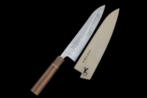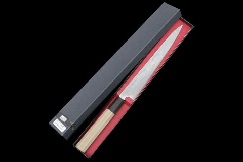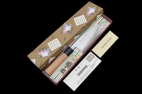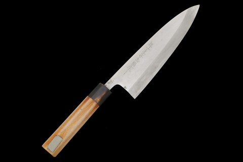 無銘出刃包丁 霞 八寸 本鍛錬 青鋼 朴柄 箱付 KN02-B3986-2L4