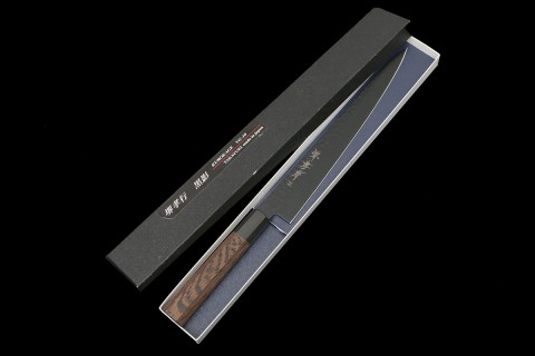 堺忠國 柳刃包丁 本焼 九寸 朴柄 鞘付