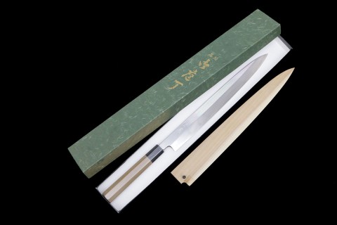 不動國行 鎌形薄刃包丁 本焼 七寸半 黒檀柄 黒檀鞘・ケース付