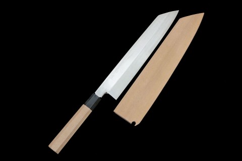 無銘 柳刃包丁 本焼 尺 ステンレス系 黒檀柄 鞘付・箱付