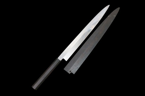 無銘柳刃包丁 本焼 尺 ステンレス系 黒檀柄 鞘付・箱付 KN02-B5396-2L4